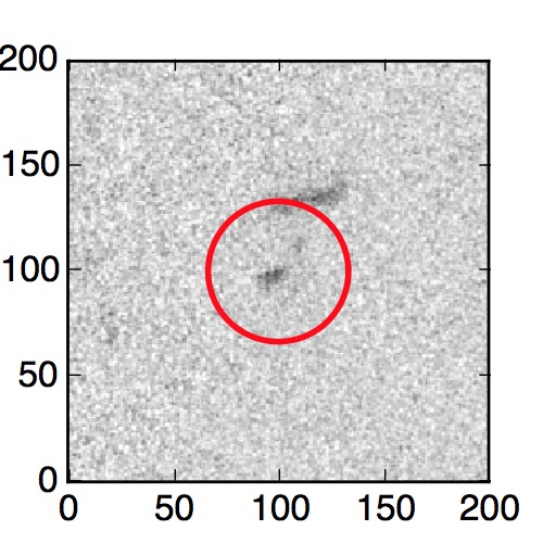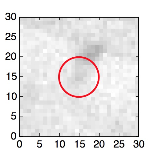 The red circle in the various panels is 1" in radius. The images are 6"x6".