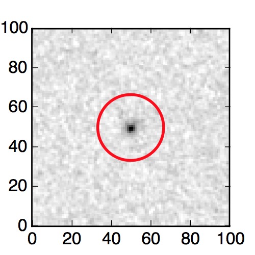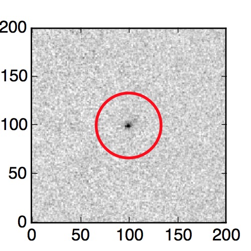 The red circle in the various panels is 1" in radius. The images are 6"x6".