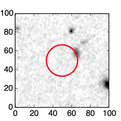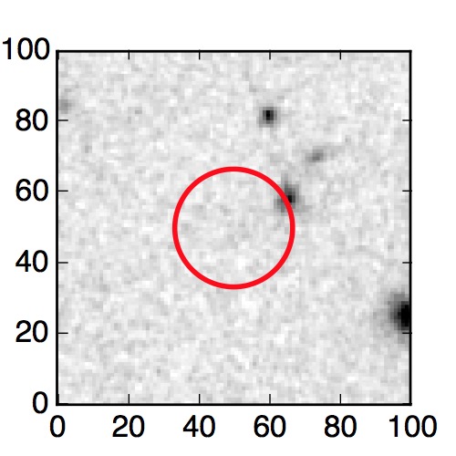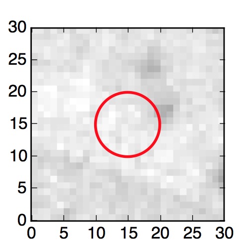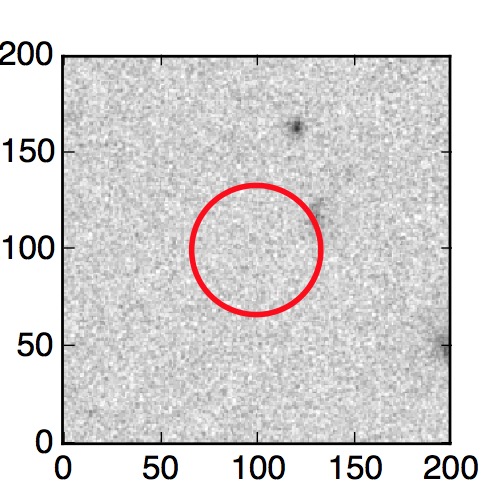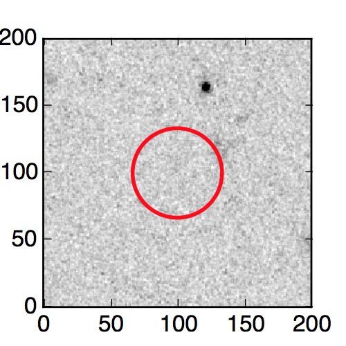 The red circle in the various panels is 1" in radius. The images are 6"x6".