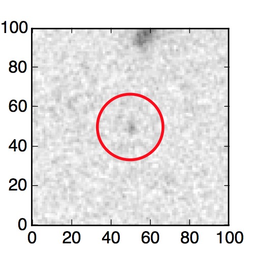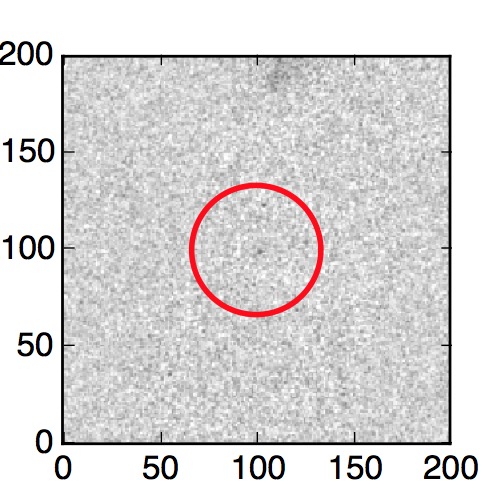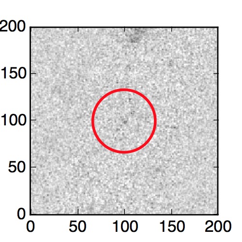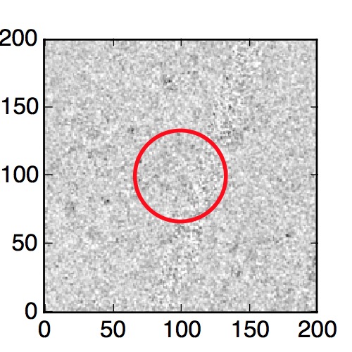 The red circle in the various panels is 1" in radius. The images are 6"x6".