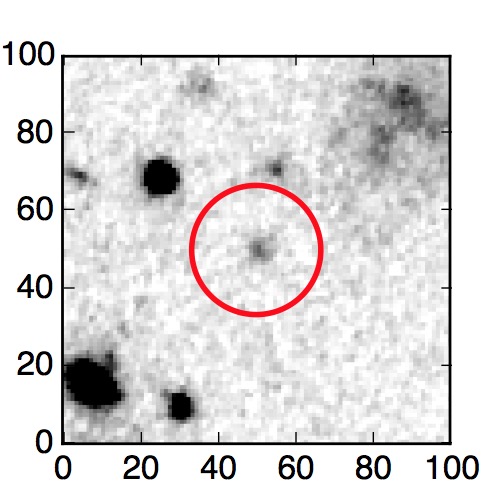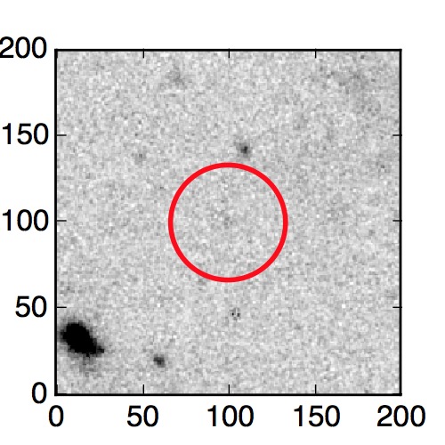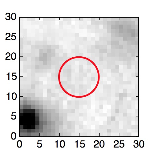 The red circle in the various panels is 1" in radius. The images are 6"x6".