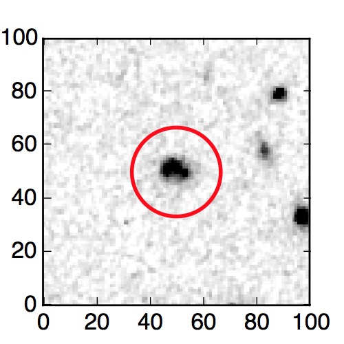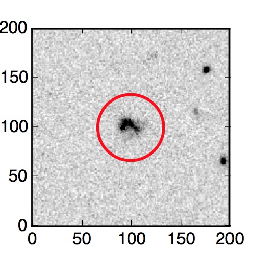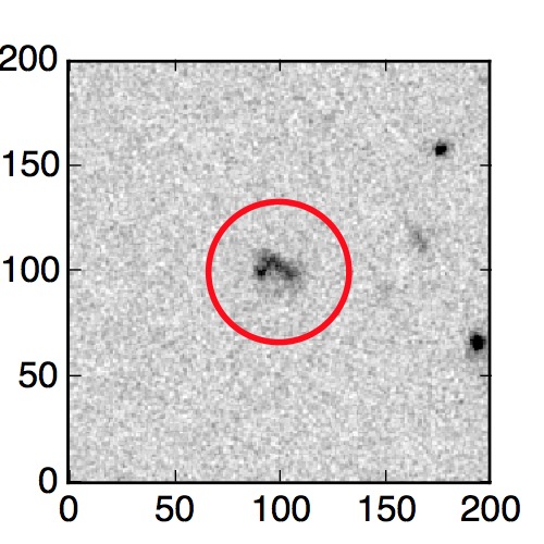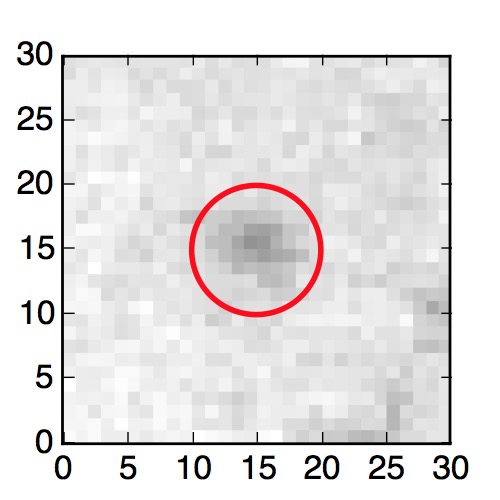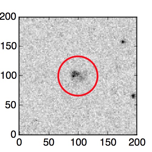 The red circle in the various panels is 1" in radius. The images are 6"x6".