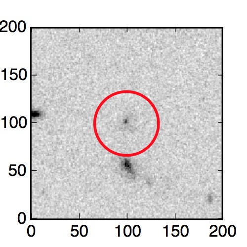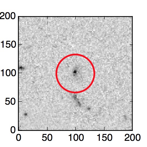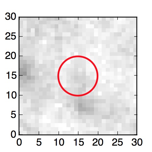The red circle in the various panels is 1" in radius. The images are 6"x6".