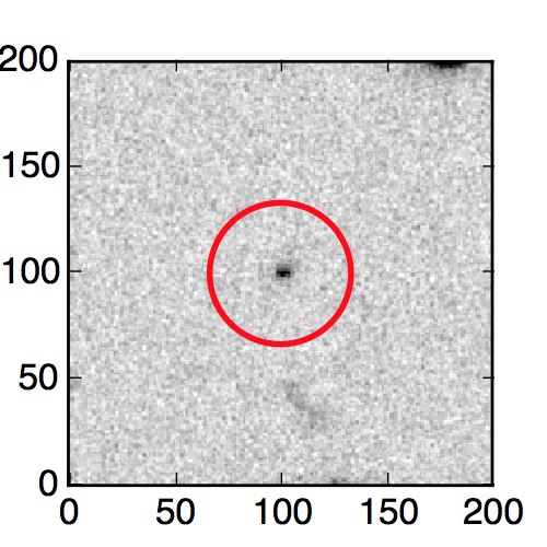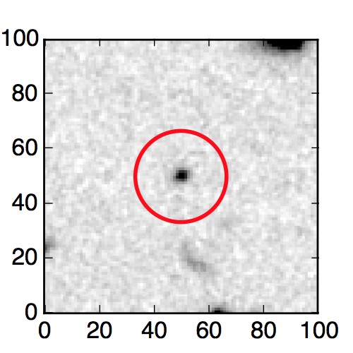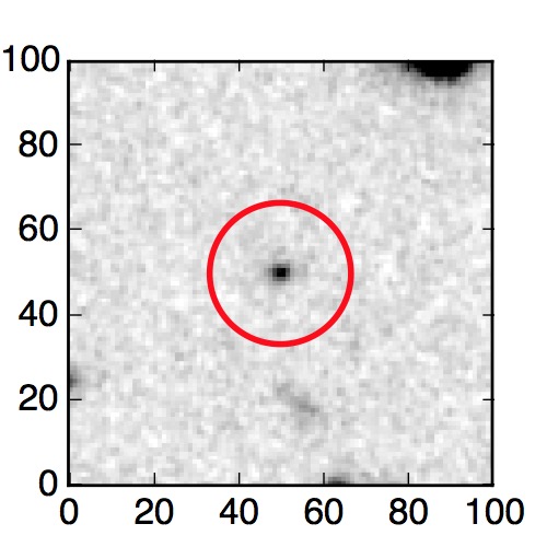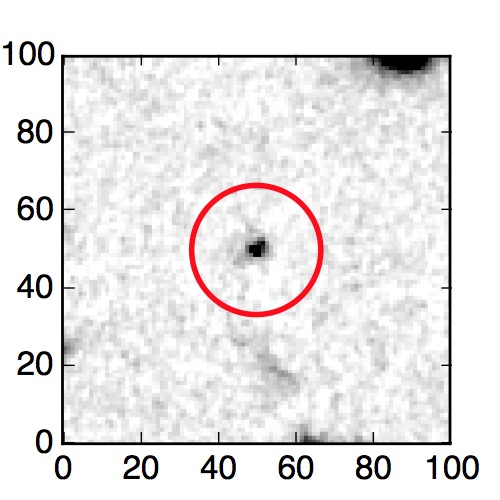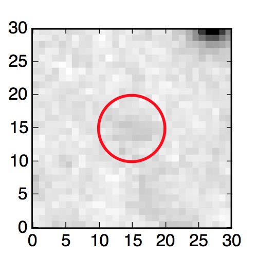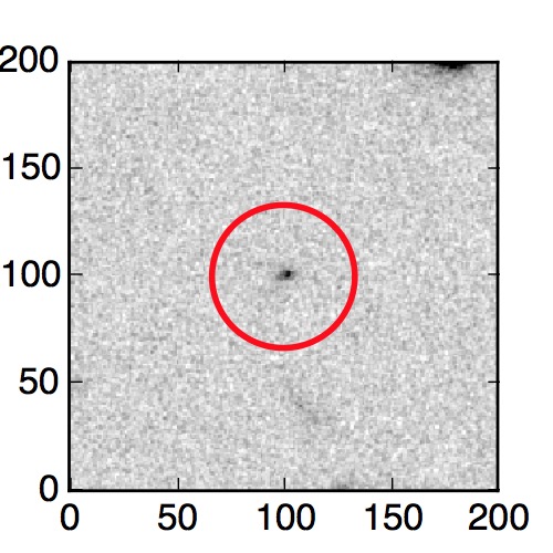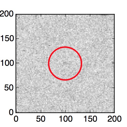 The red circle in the various panels is 1" in radius. The images are 6"x6".