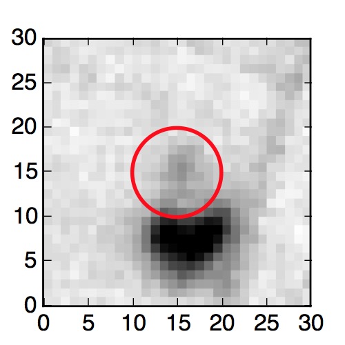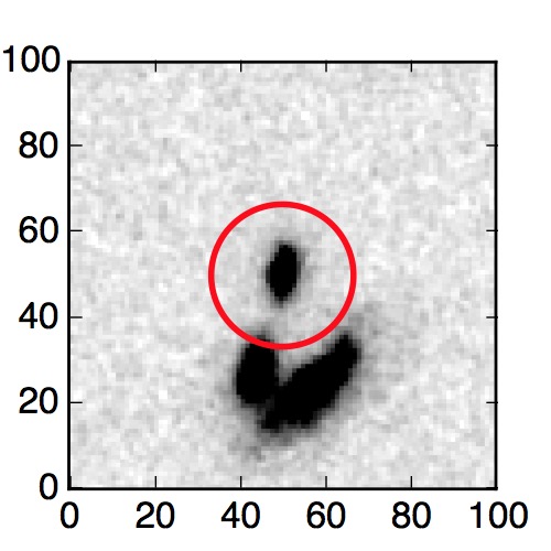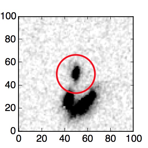 The red circle in the various panels is 1" in radius. The images are 6"x6".