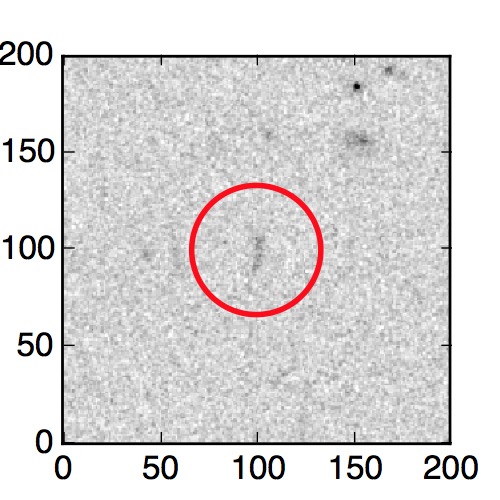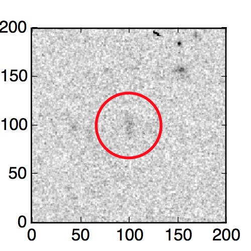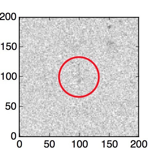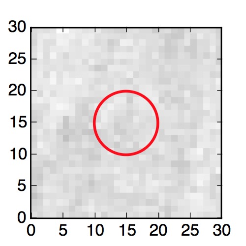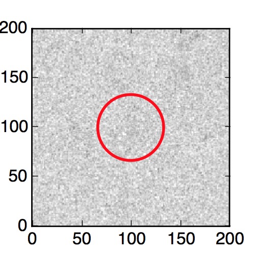 The red circle in the various panels is 1" in radius. The images are 6"x6".