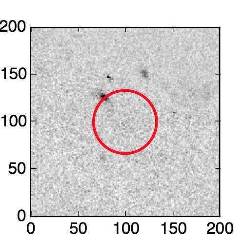 The red circle in the various panels is 1" in radius. The images are 6"x6".