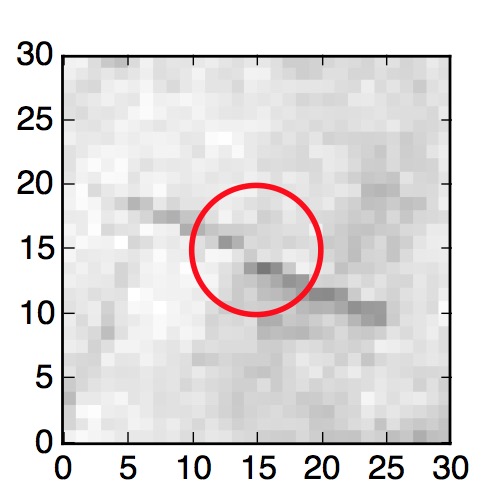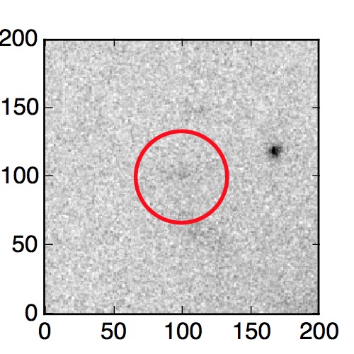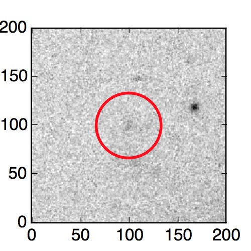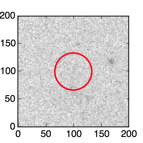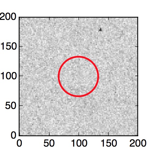 The red circle in the various panels is 1" in radius. The images are 6"x6".