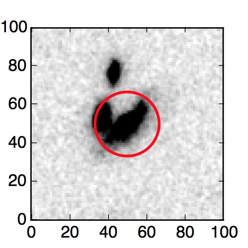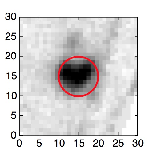 The red circle in the various panels is 1" in radius. The images are 6"x6".