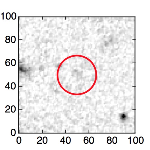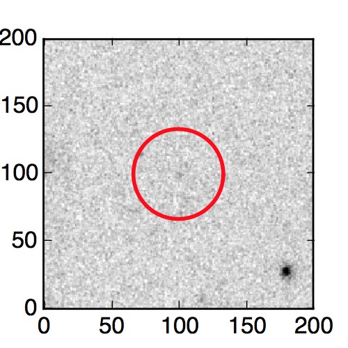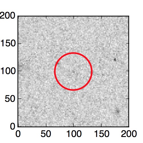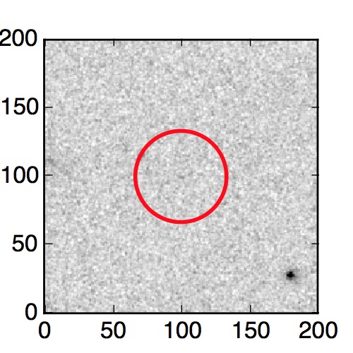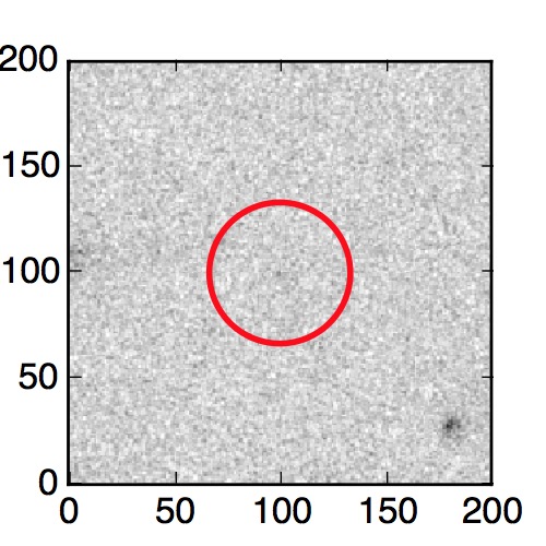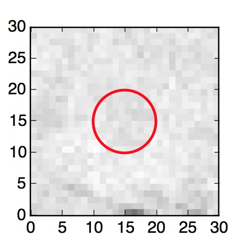 The red circle in the various panels is 1" in radius. The images are 6"x6".