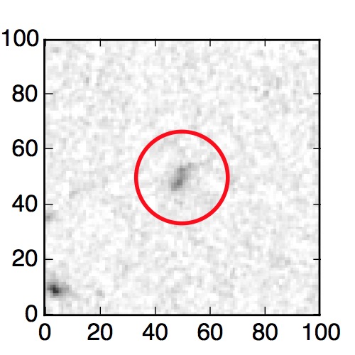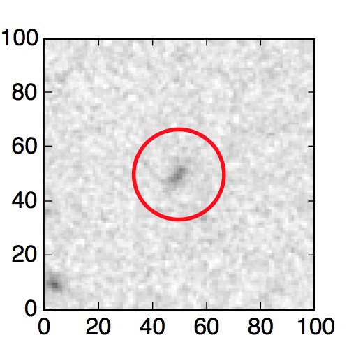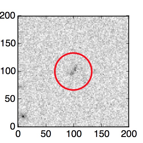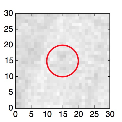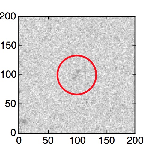 The red circle in the various panels is 1" in radius. The images are 6"x6".