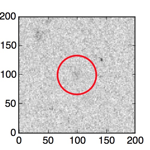 The red circle in the various panels is 1" in radius. The images are 6"x6".