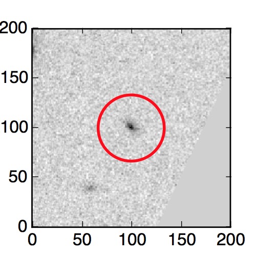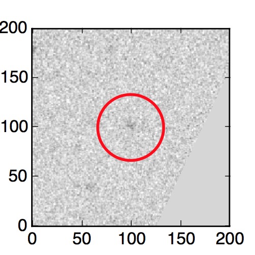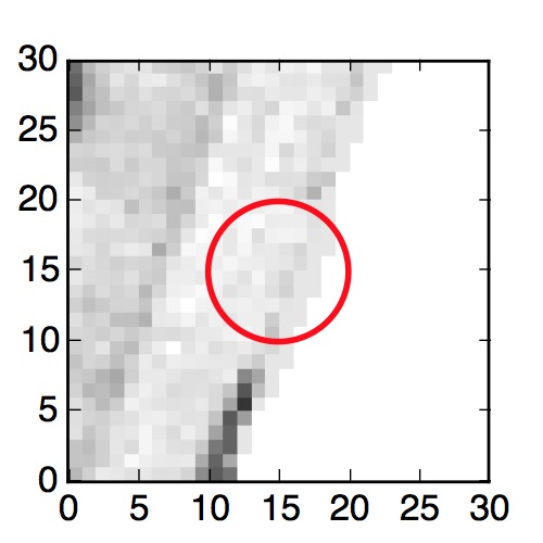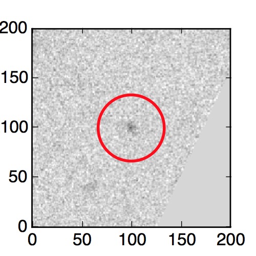 The red circle in the various panels is 1" in radius. The images are 6"x6".