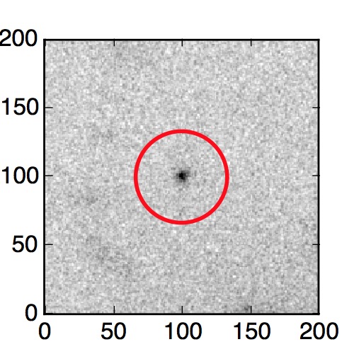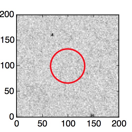 The red circle in the various panels is 1" in radius. The images are 6"x6".