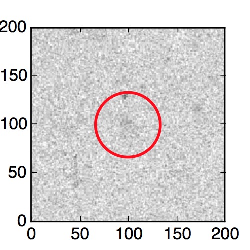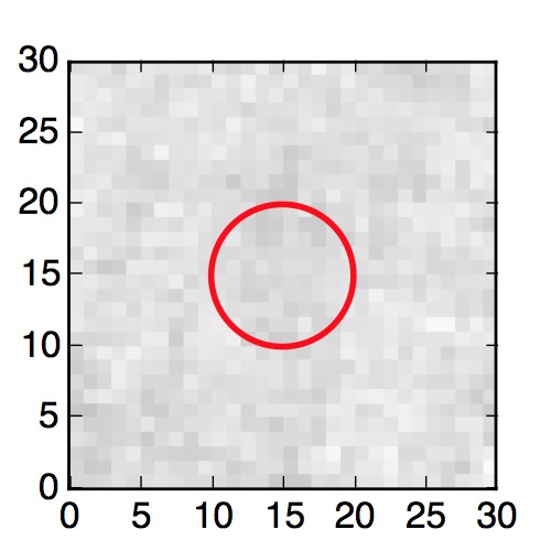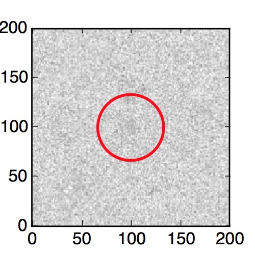 The red circle in the various panels is 1" in radius. The images are 6"x6".