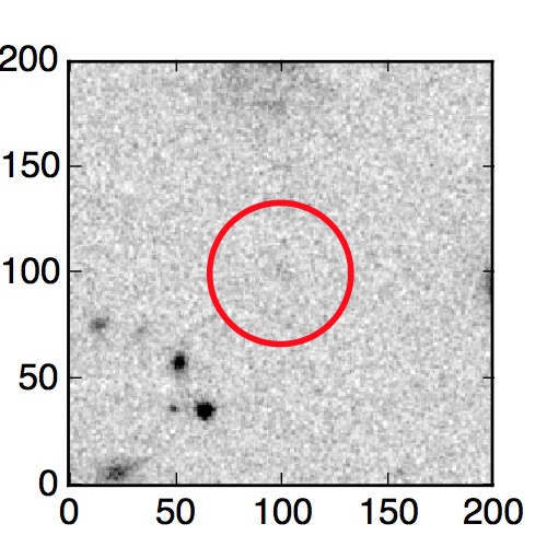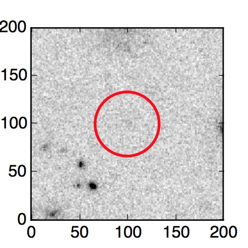 The red circle in the various panels is 1" in radius. The images are 6"x6".