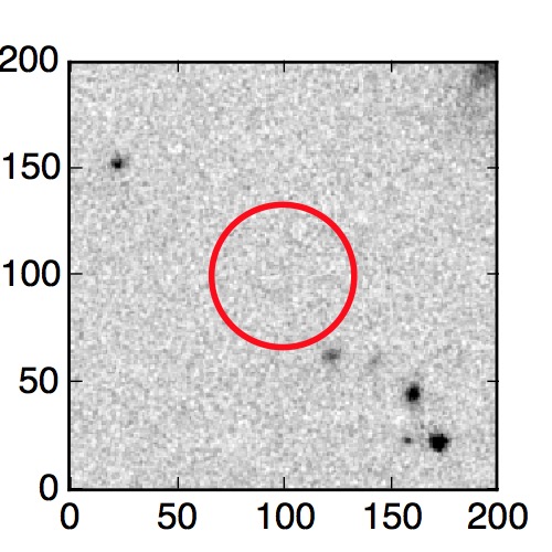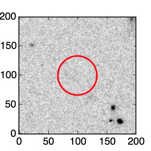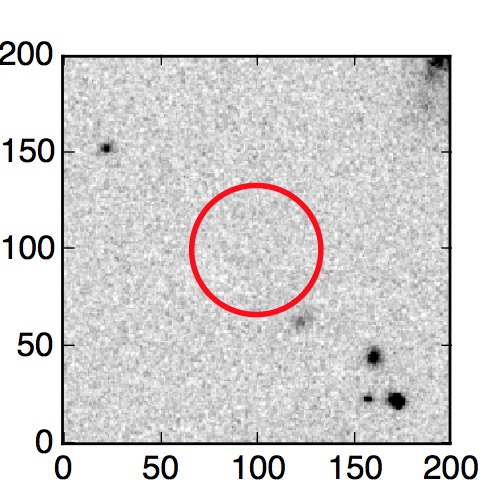 The red circle in the various panels is 1" in radius. The images are 6"x6".