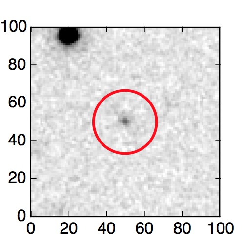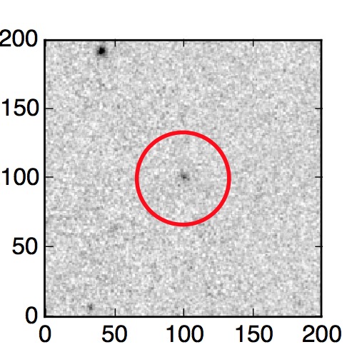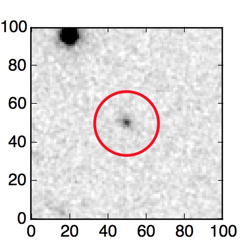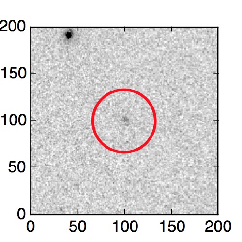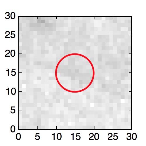 The red circle in the various panels is 1" in radius. The images are 6"x6".
