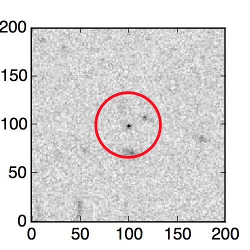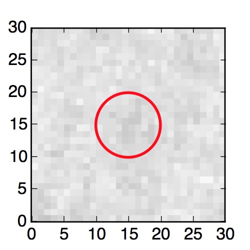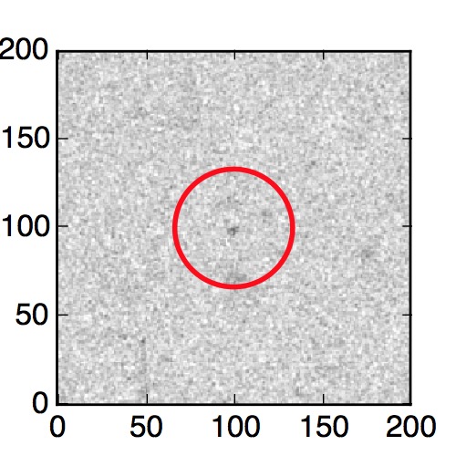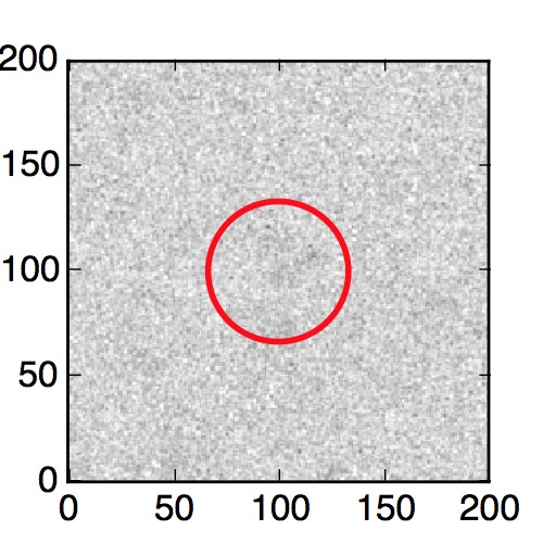 The red circle in the various panels is 1" in radius. The images are 6"x6".