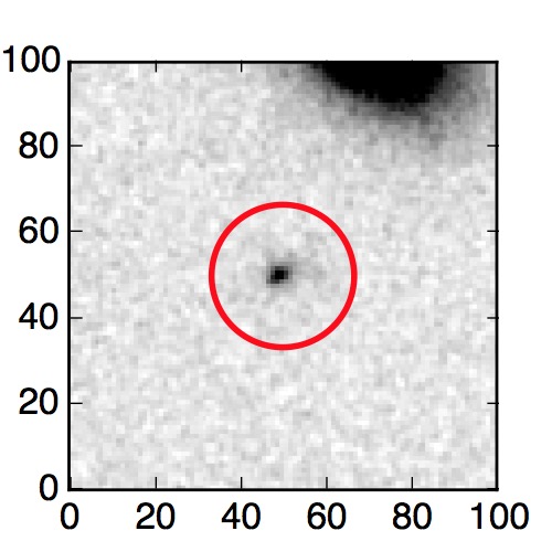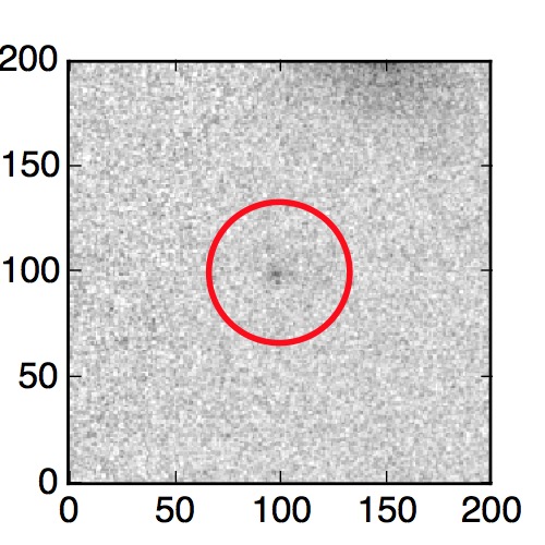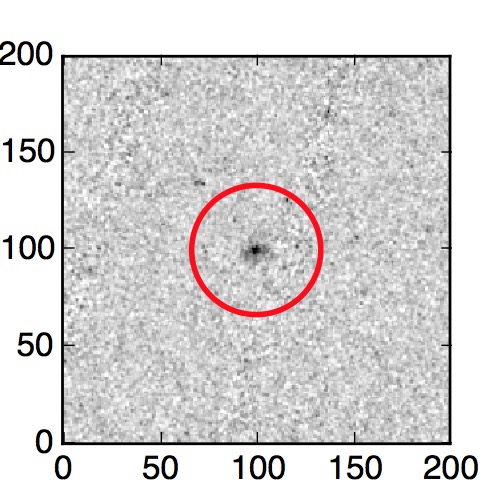 The red circle in the various panels is 1" in radius. The images are 6"x6".