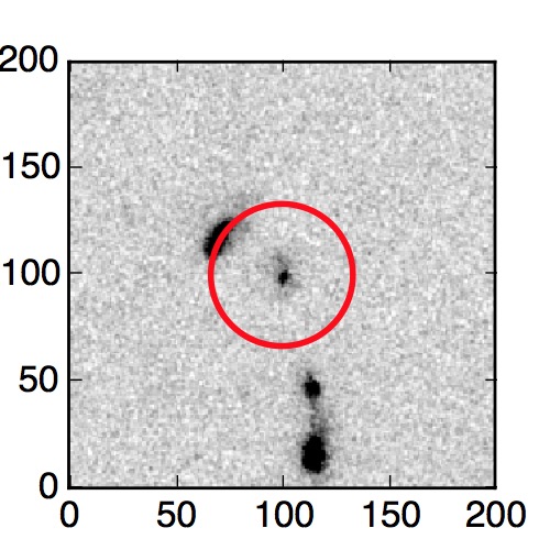 The red circle in the various panels is 1" in radius. The images are 6"x6".