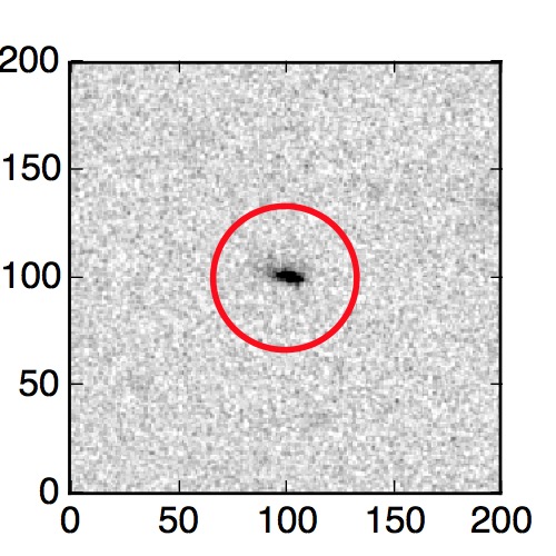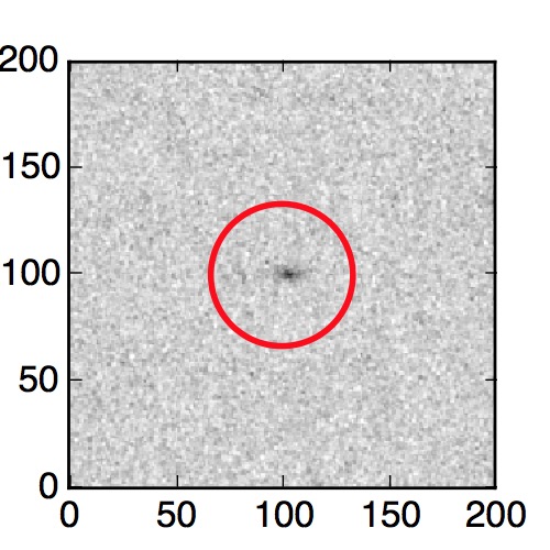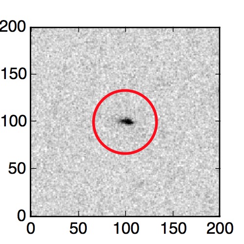 The red circle in the various panels is 1" in radius. The images are 6"x6".