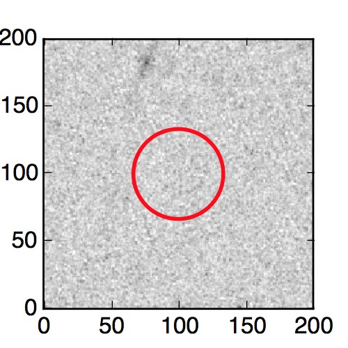 The red circle in the various panels is 1" in radius. The images are 6"x6".