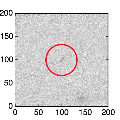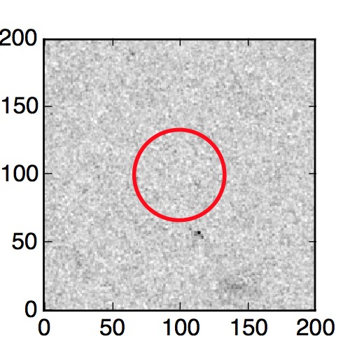 The red circle in the various panels is 1" in radius. The images are 6"x6".