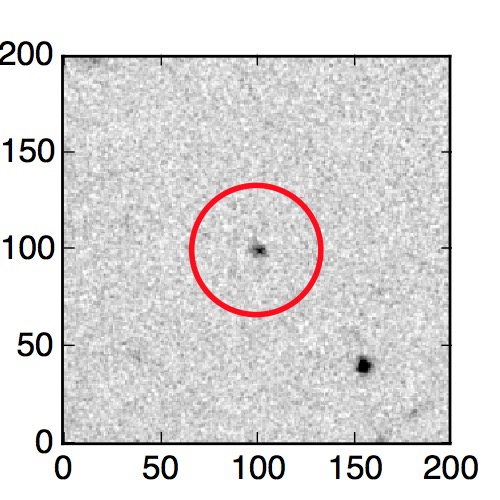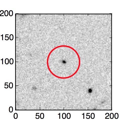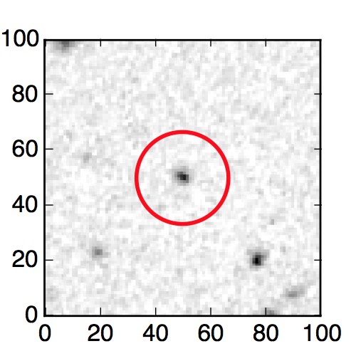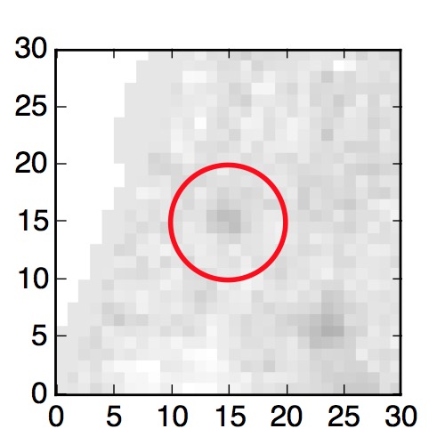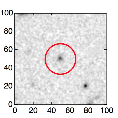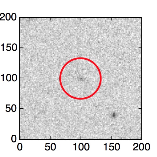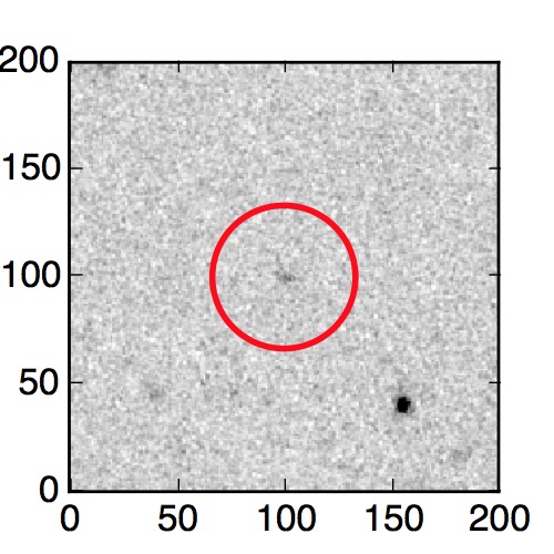 The red circle in the various panels is 1" in radius. The images are 6"x6".