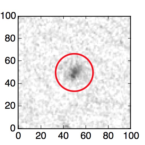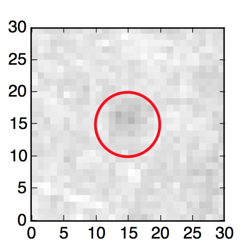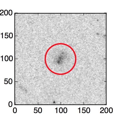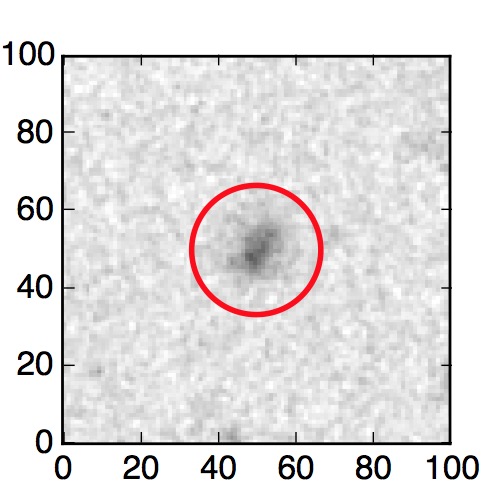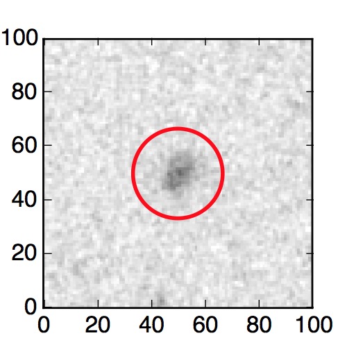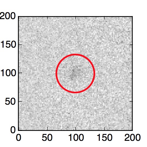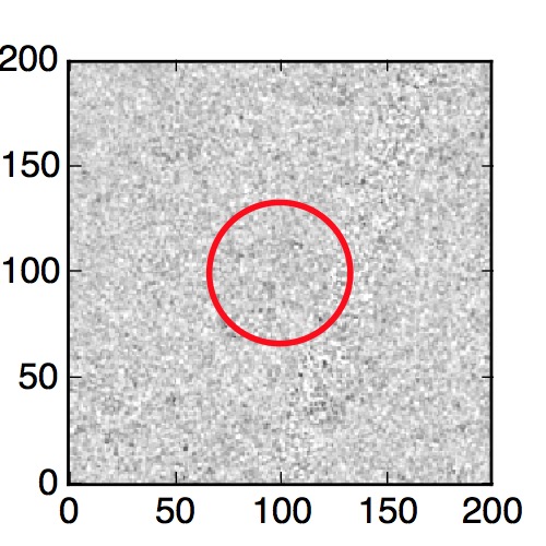 The red circle in the various panels is 1" in radius. The images are 6"x6".