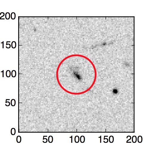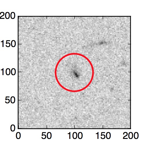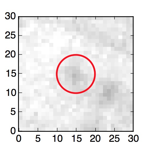 The red circle in the various panels is 1" in radius. The images are 6"x6".