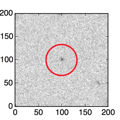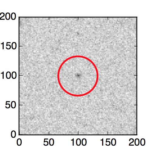 The red circle in the various panels is 1" in radius. The images are 6"x6".