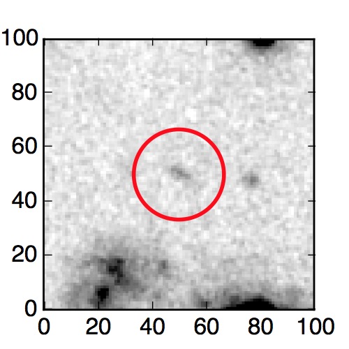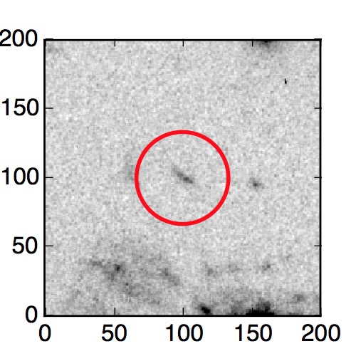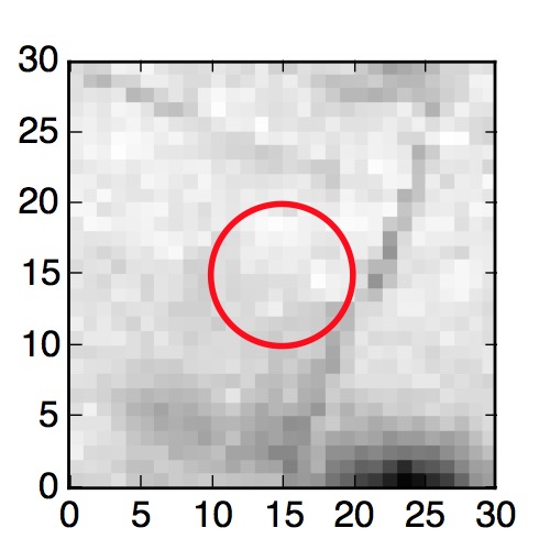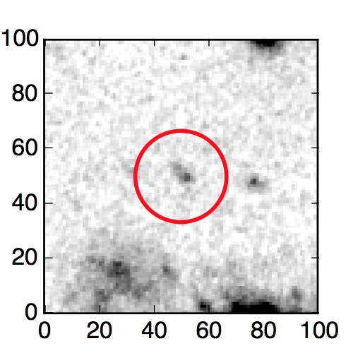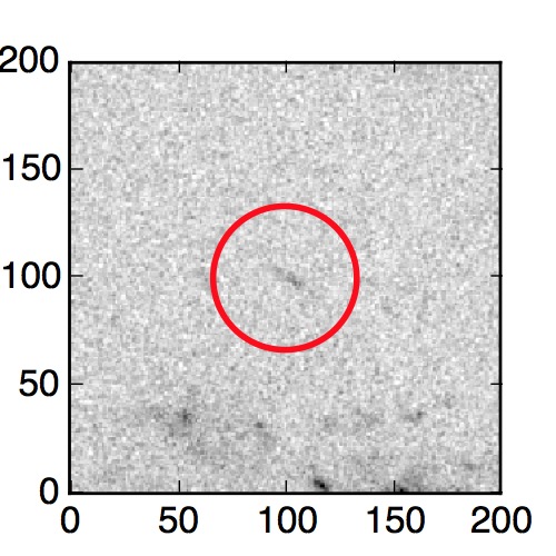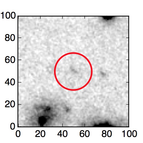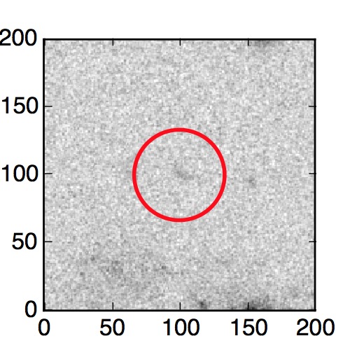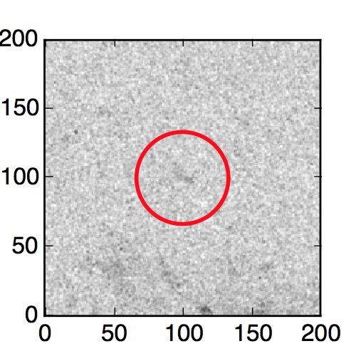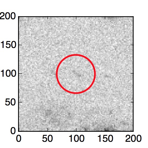 The red circle in the various panels is 1" in radius. The images are 6"x6".