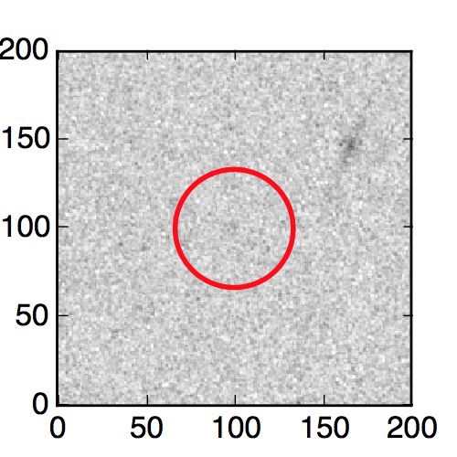 The red circle in the various panels is 1" in radius. The images are 6"x6".
