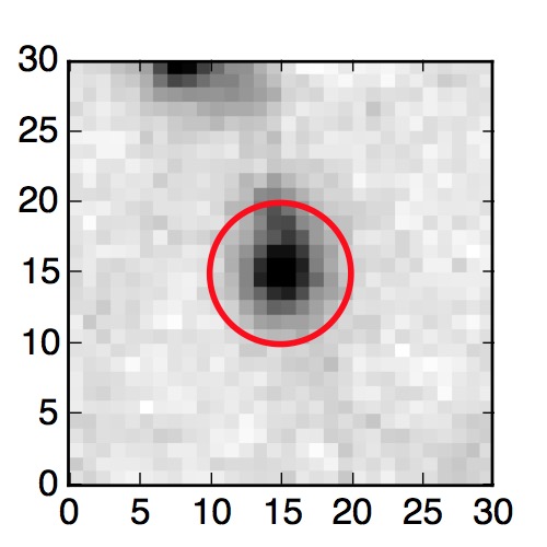 The red circle in the various panels is 1" in radius. The images are 6"x6".