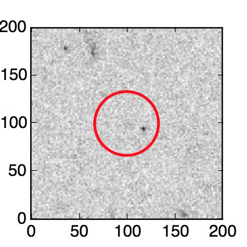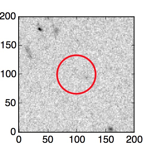 The red circle in the various panels is 1" in radius. The images are 6"x6".