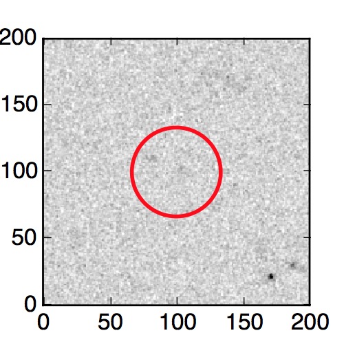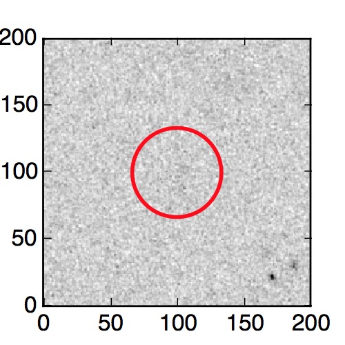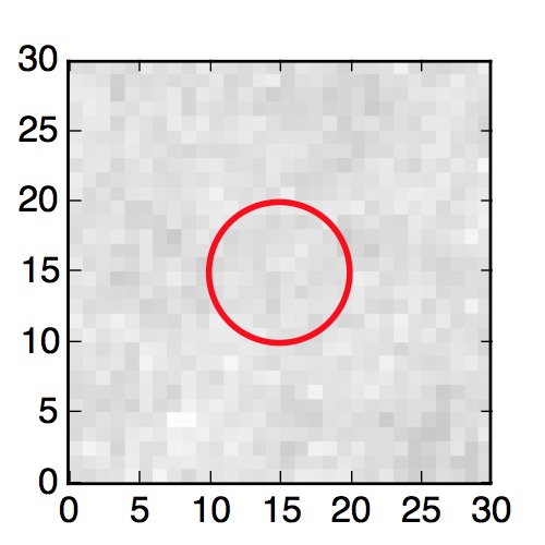 The red circle in the various panels is 1" in radius. The images are 6"x6".