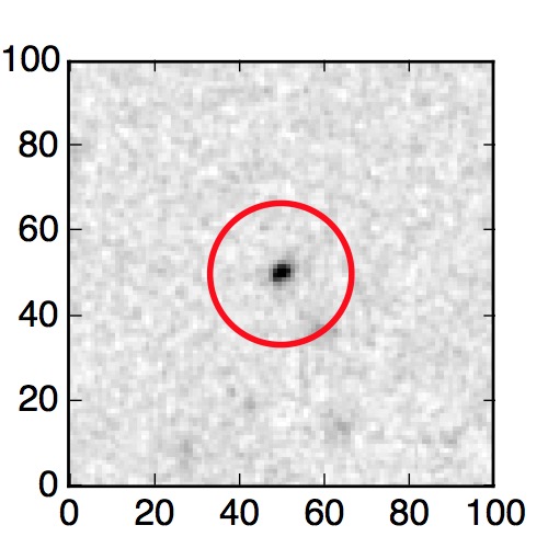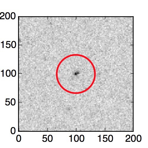 The red circle in the various panels is 1" in radius. The images are 6"x6".