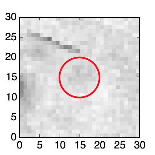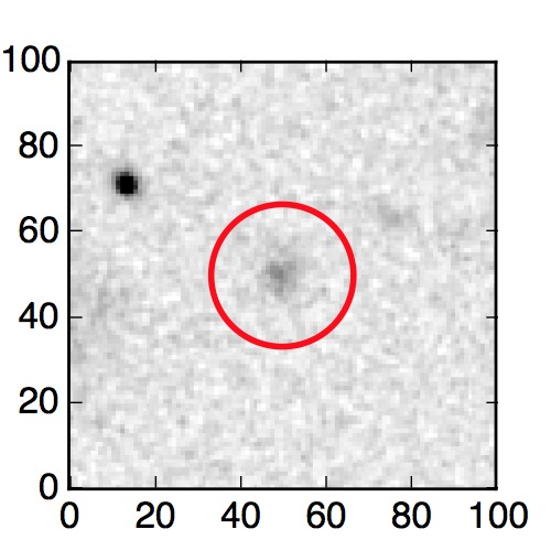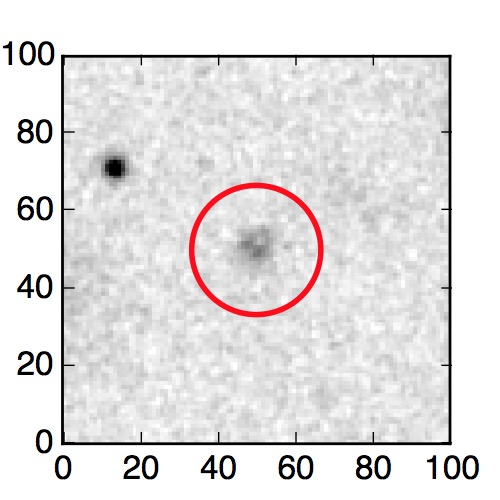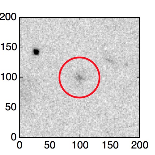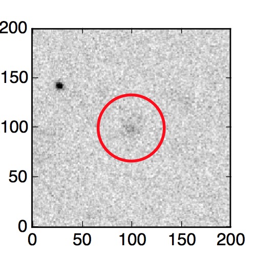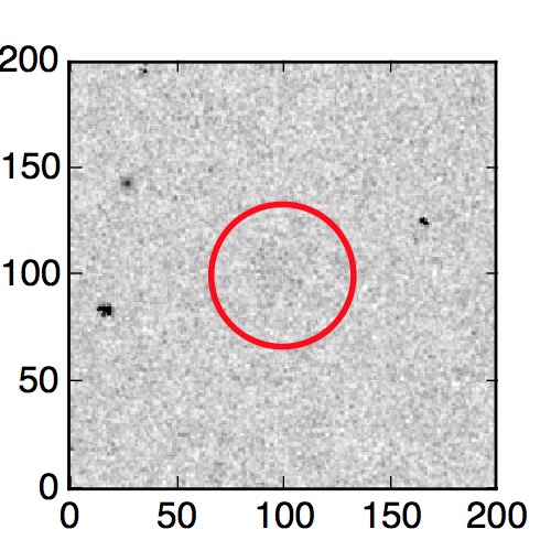 The red circle in the various panels is 1" in radius. The images are 6"x6".