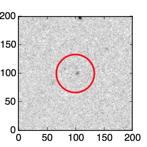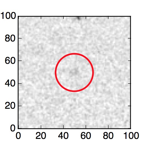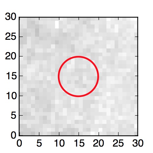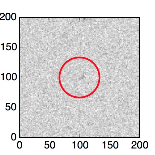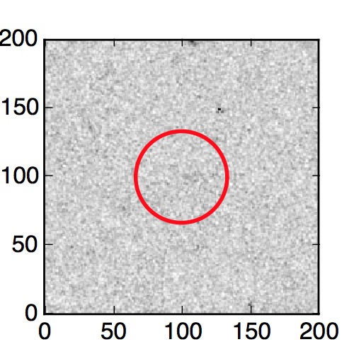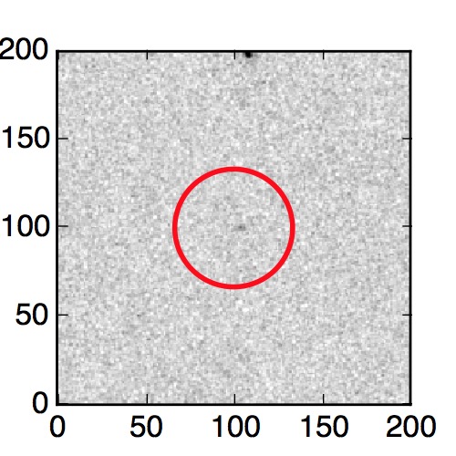 The red circle in the various panels is 1" in radius. The images are 6"x6".