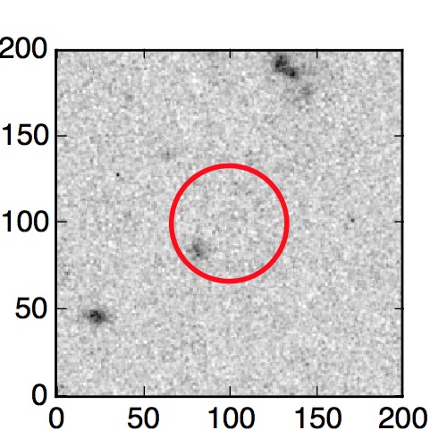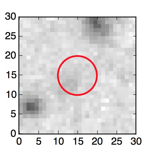 The red circle in the various panels is 1" in radius. The images are 6"x6".