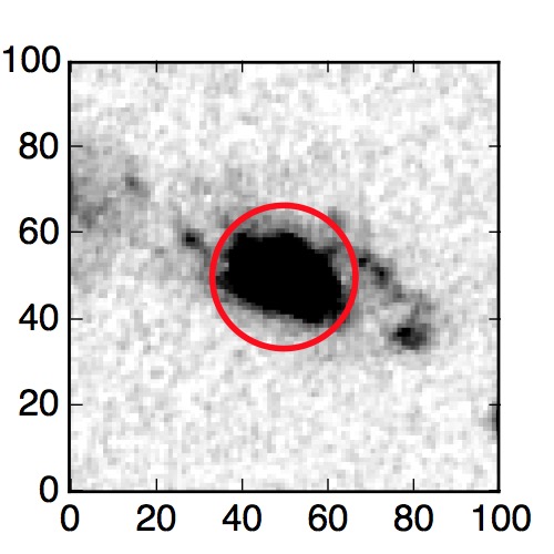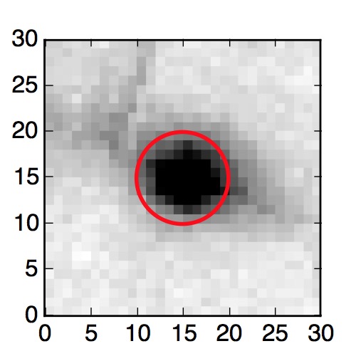 The red circle in the various panels is 1" in radius. The images are 6"x6".