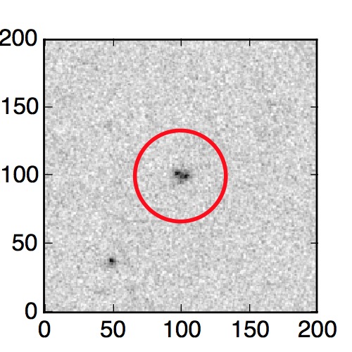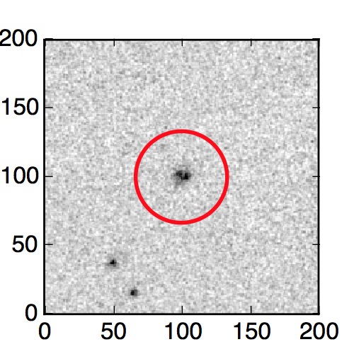 The red circle in the various panels is 1" in radius. The images are 6"x6".