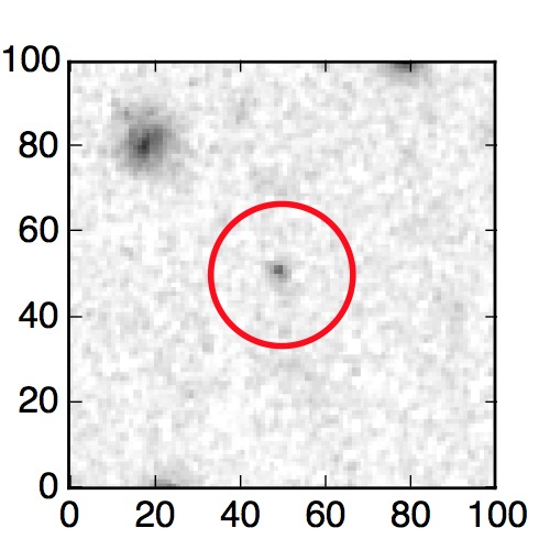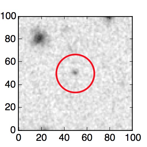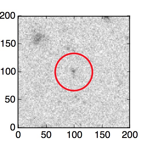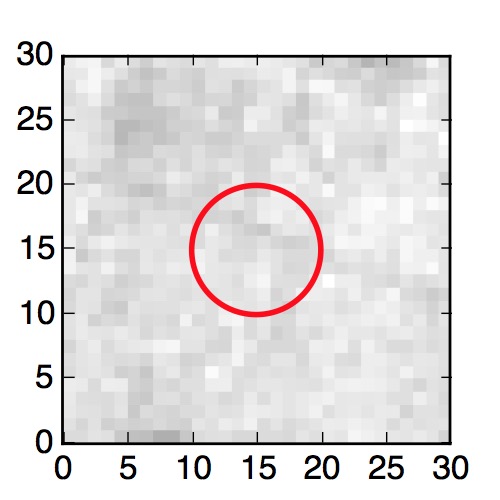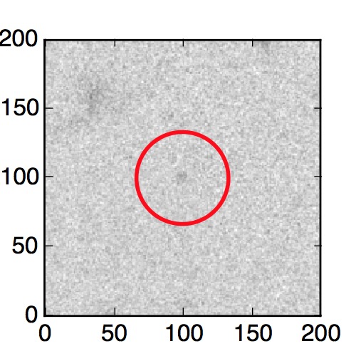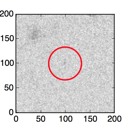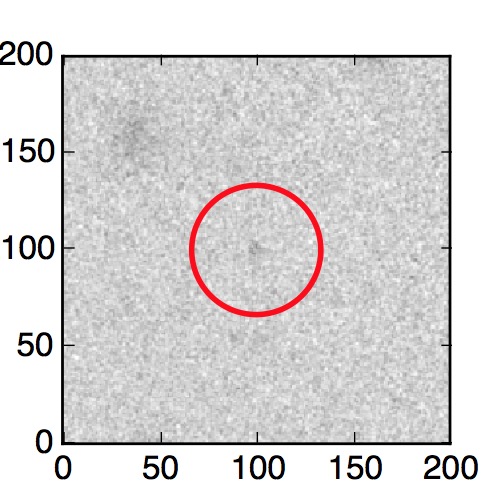 The red circle in the various panels is 1" in radius. The images are 6"x6".