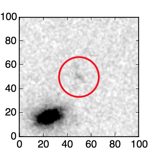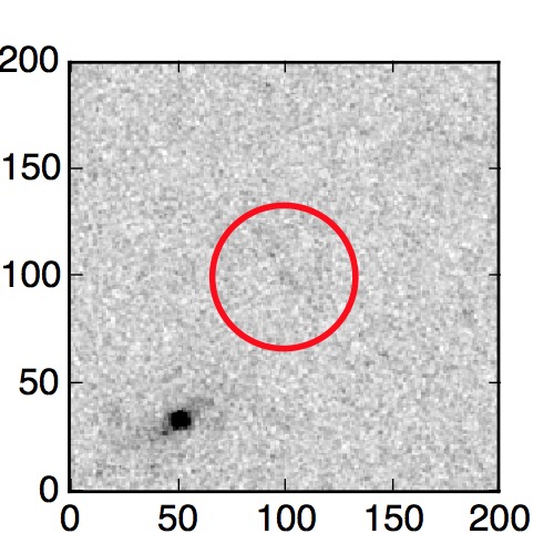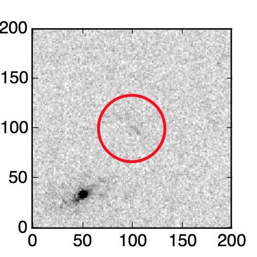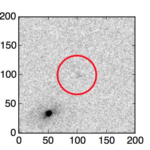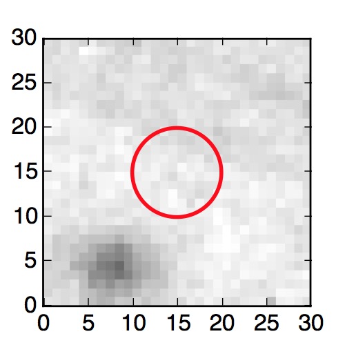 The red circle in the various panels is 1" in radius. The images are 6"x6".