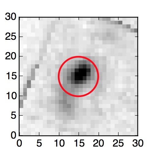 The red circle in the various panels is 1" in radius. The images are 6"x6".