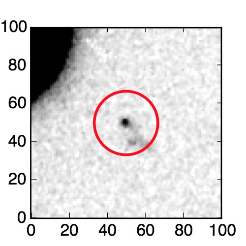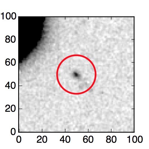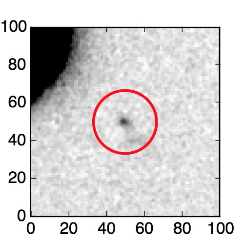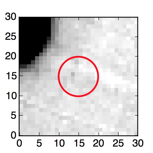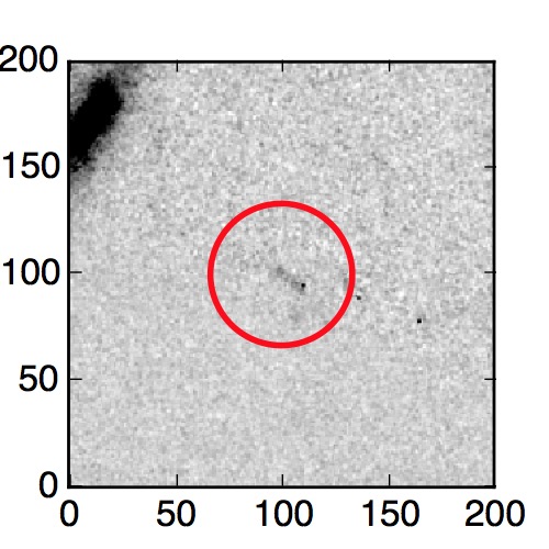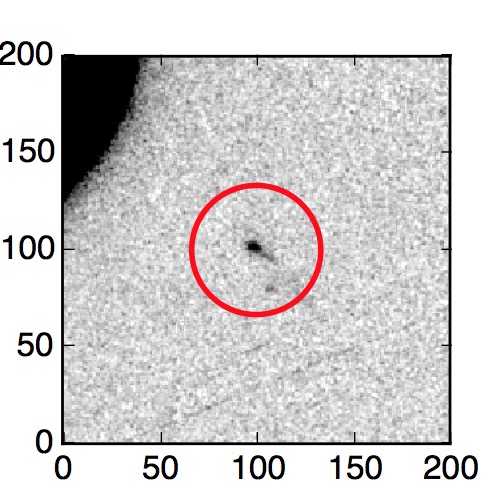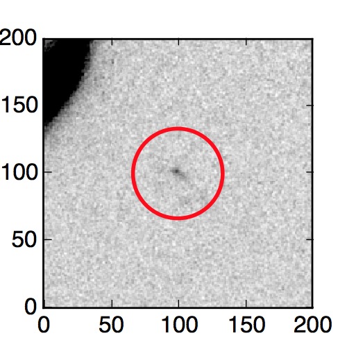 The red circle in the various panels is 1" in radius. The images are 6"x6".