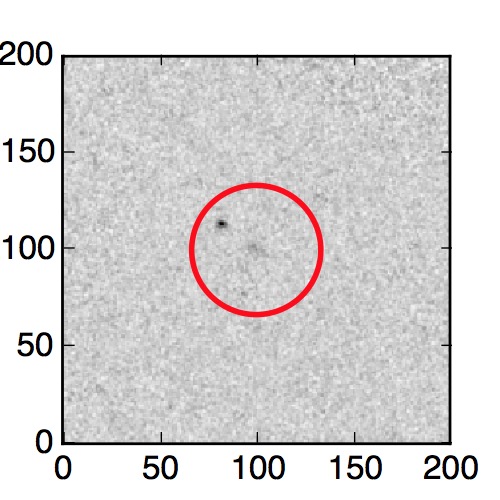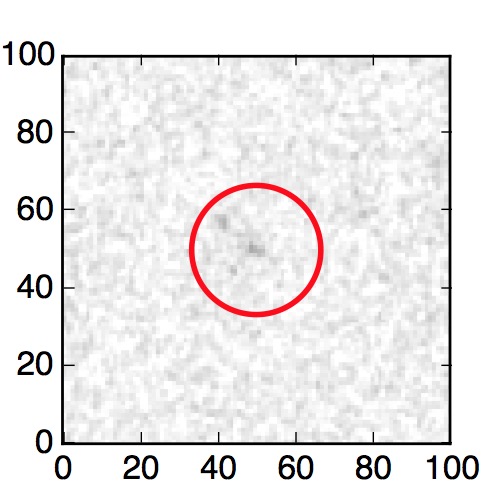 The red circle in the various panels is 1" in radius. The images are 6"x6".