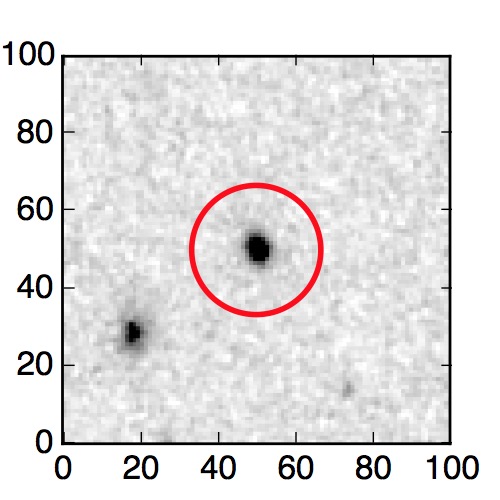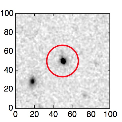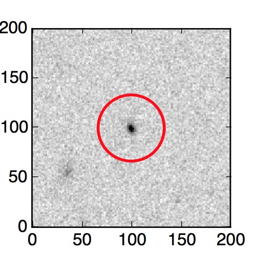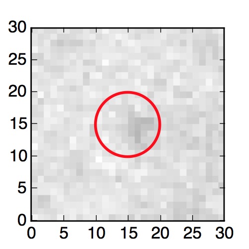 The red circle in the various panels is 1" in radius. The images are 6"x6".