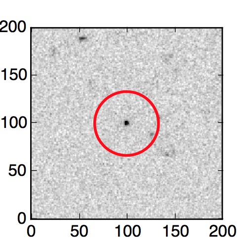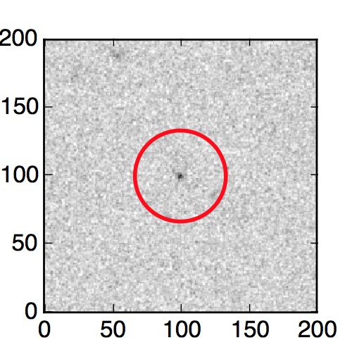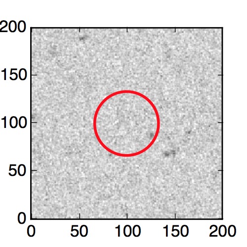 The red circle in the various panels is 1" in radius. The images are 6"x6".